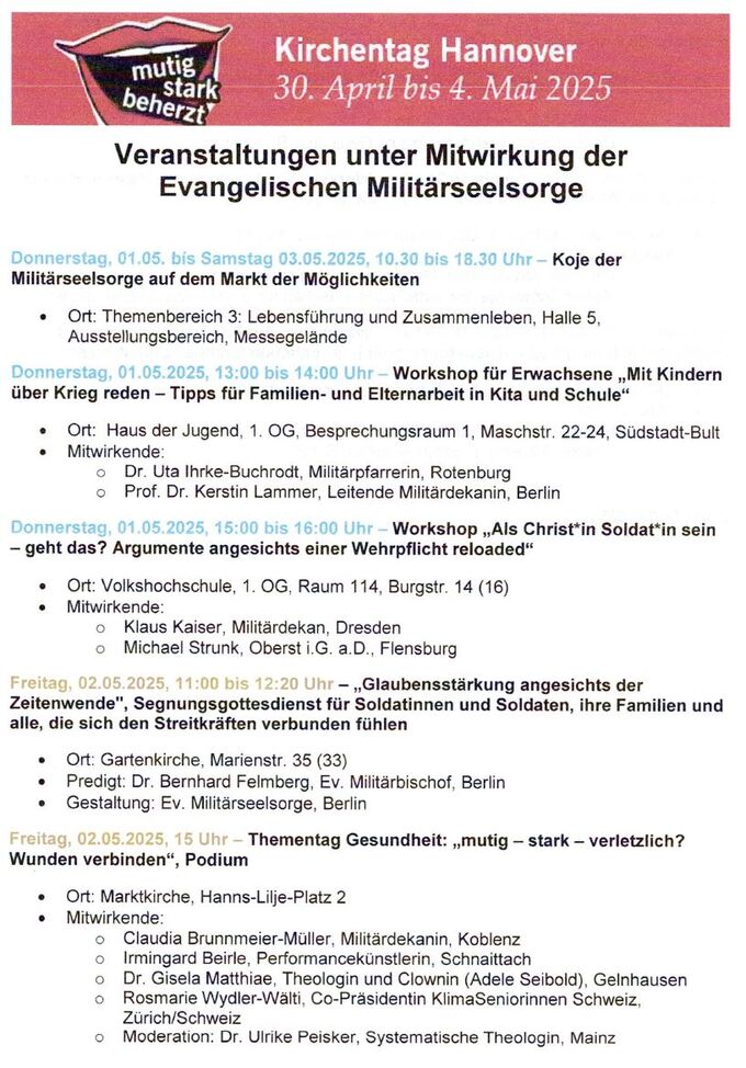 Die Evangelische Militärseelsorge war mit Engagements, Themen, Workshops und Gesprächen in verschiedenen Stadtteilen Hannovers vertreten ...
